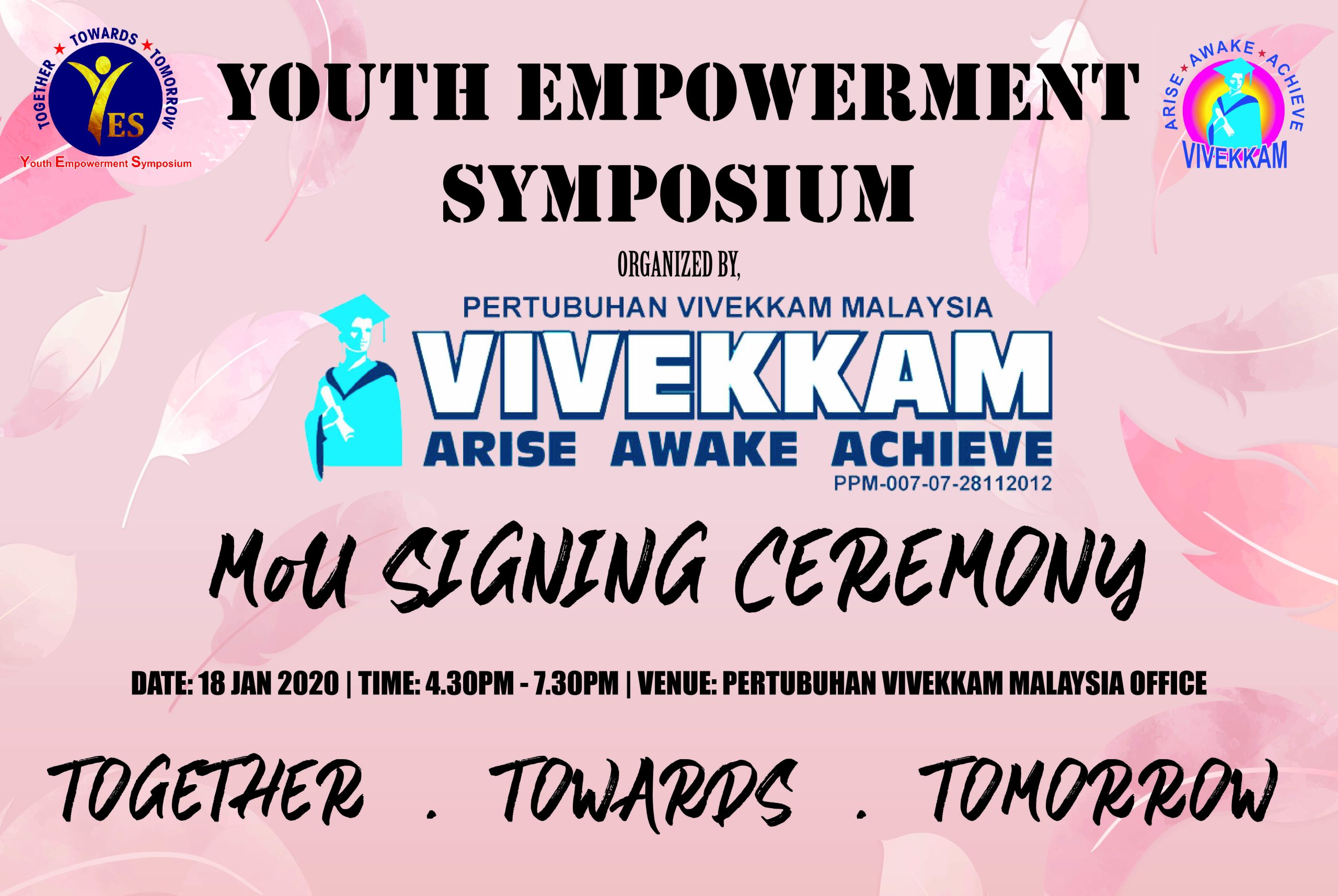 YES MoU Signing 2020 MoU SIGNING CEREMONY between VIVEKKAM and our partners : POLIS DIRAJA MALAYSIA & MALAYSIA CRIME PREVENTION FOUNDATION together with our Collaborators - 10 NGO’sTOGETHER TOWARDS TOMORROW «12»